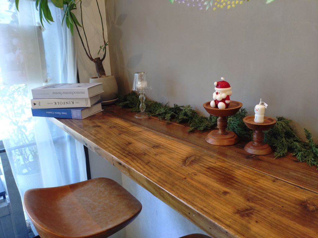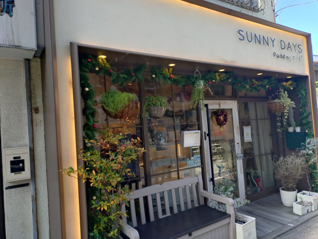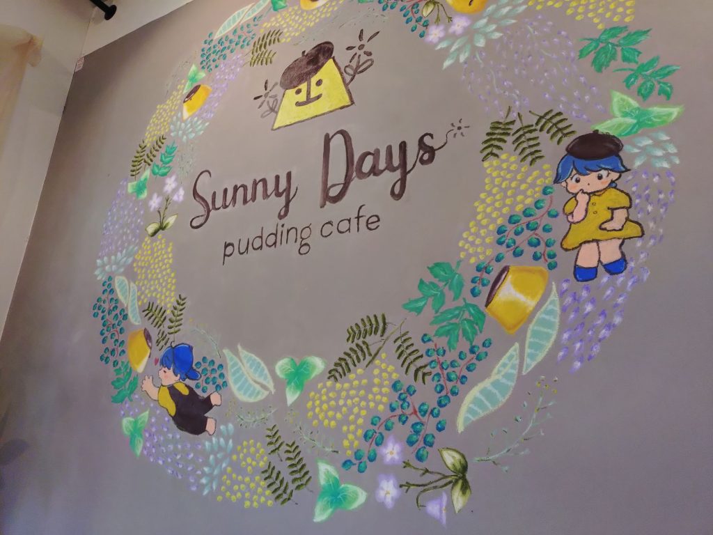 壁には「Sunny Days pudding cafe」の文字と可愛らしい絵が描かれています。